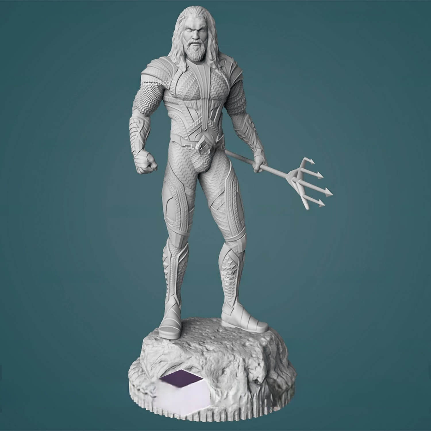 Η στάση του Aquaman είναι γεμάτη αποφασιστικότητα και βασιλική υπερηφάνεια, ενώ η βάση της φιγούρας θυμίζει υποθαλάσσια βραχώδη επιφάνεια. Κάθε λεπτομέρεια του σώματος και της στολής έχει αποδοθεί με ακρίβεια, προσδίδοντας στο άγαλμα μια εντυπωσιακή ρεαλιστική υφή.