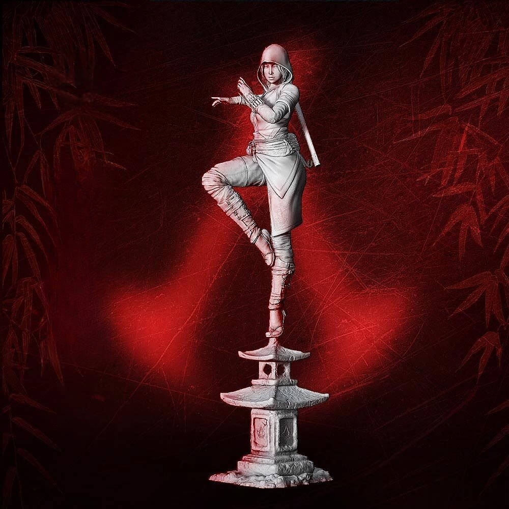 Η στολή της, με παραδοσιακά ιαπωνικά στοιχεία και Assassin λεπτομέρειες, καθώς και η κουκούλα που κρύβει μερικώς το πρόσωπό της, δημιουργούν μια φιγούρα μυστηριώδη αλλά επικίνδυνη. Το diorama περιλαμβάνει βάση εμπνευσμένη από την Ιαπωνία της εποχής Sengoku, ενισχύοντας την ατμόσφαιρα του παιχνιδιού.