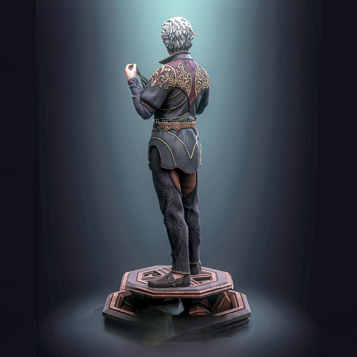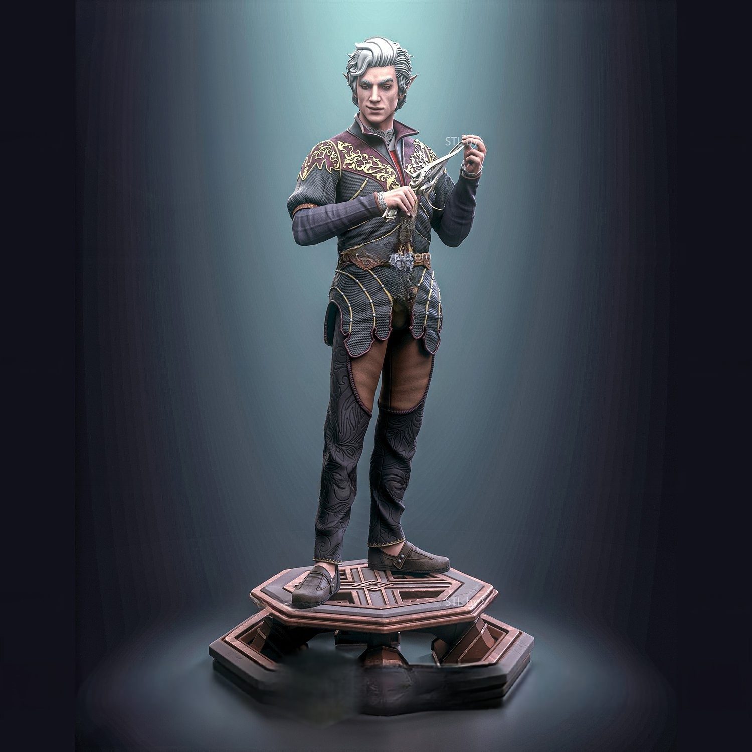 Ο αριστοκρατικός και επικίνδυνα γοητευτικός Astarion από το Baldur’s Gate 3 παρουσιάζεται σε αυτή τη premium fan art φιγούρα με την χαρακτηριστική του αύρα κομψότητας και απειλής. Στέκεται επιβλητικά πάνω σε διακοσμητική βάση, κρατώντας το περίτεχνο στιλέτο του, ενώ το χαμόγελό του υποδηλώνει περισσότερα απ’ όσα φαίνονται.
