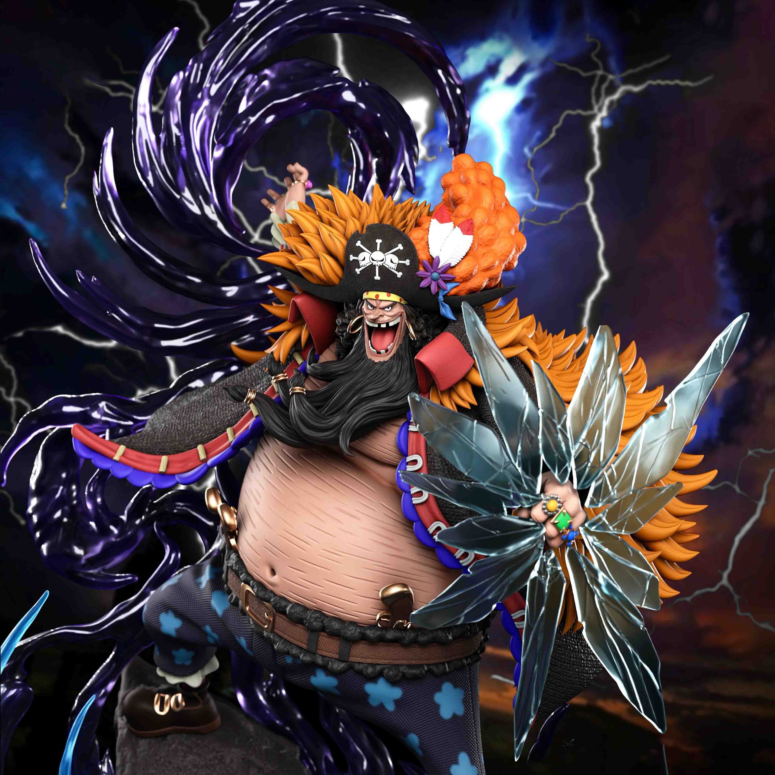 Η βάση αναπαριστά το χάος της μάχης, με μαύρες σκιές και κύματα ενέργειας να ξεπηδούν από το έδαφος. Tονίζοντας το μέγεθος και τη δύναμη του Blackbeard. Πρόκειται για ένα κομμάτι που αποτυπώνει την απόλυτη στιγμή κυριαρχίας, όταν ο Teach σφράγισε τη θέση του ως Yonko.