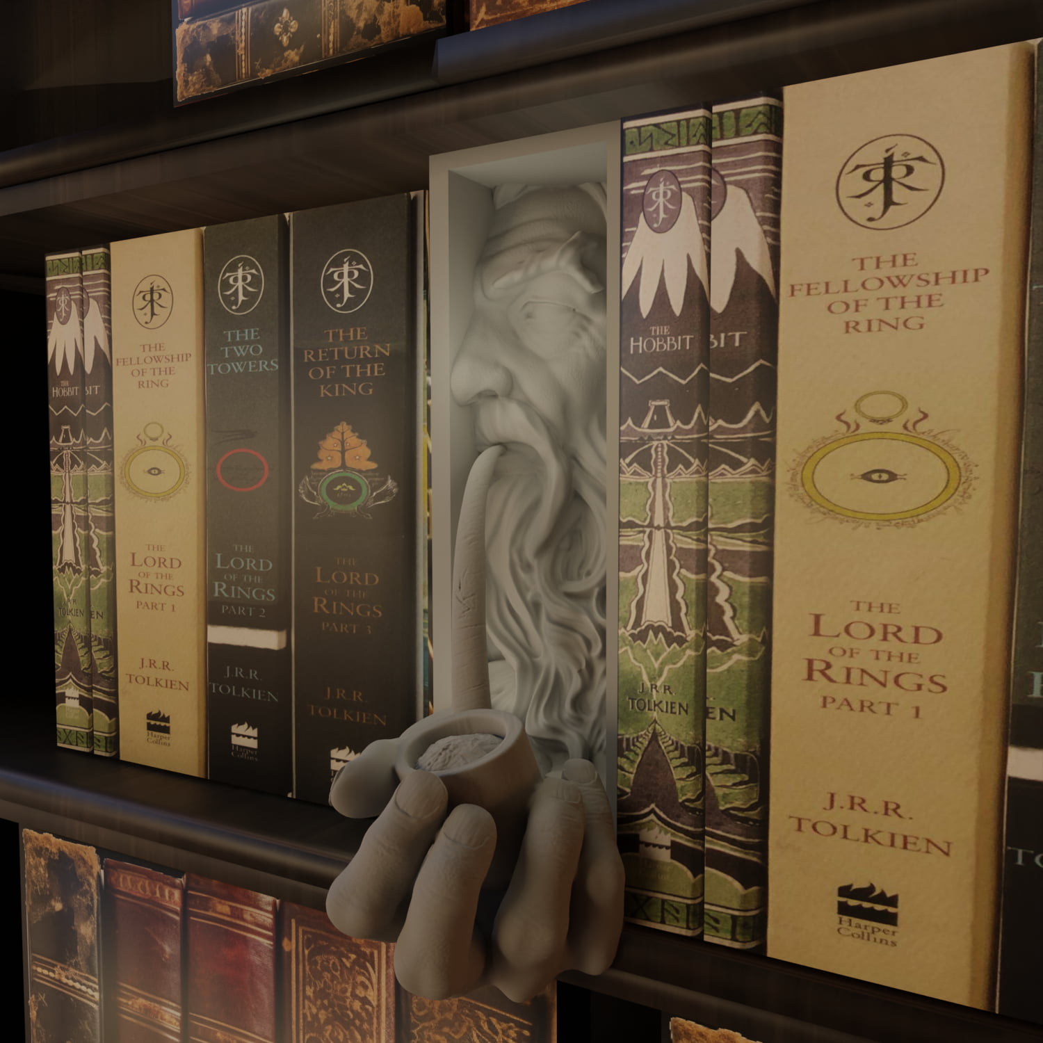 Η ρεαλιστική απόδοση του χεριού και της πίπας που προεξέχει από το ράφι δημιουργεί την αίσθηση πως ο Gandalf είναι κυριολεκτικά μέσα στη βιβλιοθήκη σου, έτοιμος να σου ψιθυρίσει λόγια σοφίας κάθε φορά που παίρνεις ένα βιβλίο.