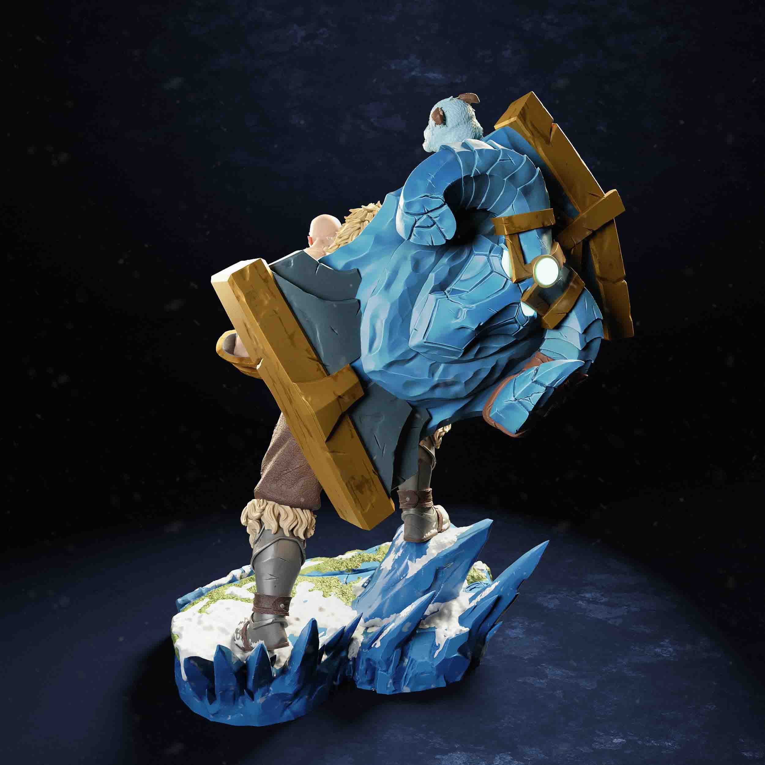 Το Βraum diorama League of Legends αποτυπώνει τον αγαπημένο αγαθό γίγαντα με μοναδική λεπτομέρεια. Ο Braum εμφανίζεται με την εμβληματική του ασπίδα, κρατώντας στοργικά ένα Poro, δημιουργώντας μια σκηνή γεμάτη δύναμη και καρδιά. Το Βraum diorama League of Legends βασίζεται σε παγωμένο τοπίο της Freljord και αναδεικνύει την ηρωική του παρουσία.