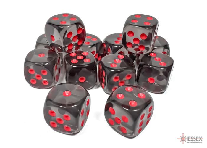 Chessex – Translucent 16mm d6 Smoke/Red Dice Block (12 Dice)