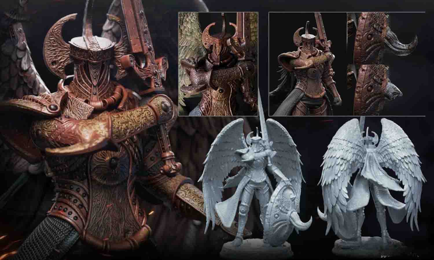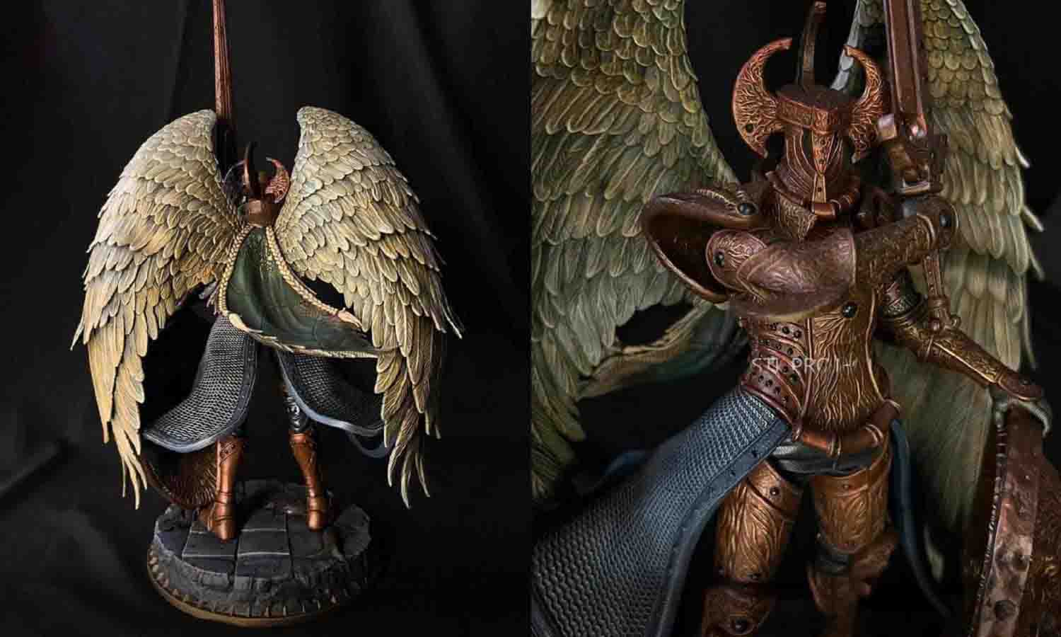 Κατασκευασμένη από υψηλής ανάλυσης ρητίνη, η φιγούρα αναδεικνύει κάθε σκαλιστό μοτίβο στην πανοπλία και κάθε πτυχή στα φτερά.