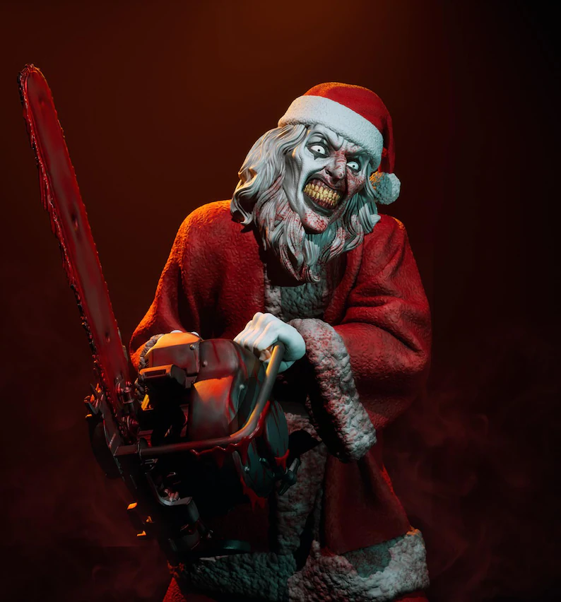 Ο εφιαλτικός Art the Clown επιστρέφει με εορταστική… διάθεση, μεταμφιεσμένος σε έναν αιματοβαμμένο Άγιο Βασίλη! Αυτή η fan art custom φιγούρα συνδυάζει την ωμότητα του Terrifier με τη μακάβρια ειρωνεία των Χριστουγέννων, καθώς ο Art κρατά αλύπητα τη φονική του αλυσοπρίονο και κοιτάζει με το μοχθηρό του βλέμμα, έτοιμος να «μοιράσει» τρόμο αντί για δώρα.