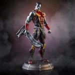 Η φιγούρα συνδυάζει δυναμισμό και κομψότητα, με έμφαση στην ανατομία, τις ραφές της στολής και την ένταση του βλέμματος πίσω από τα γυαλιά του.