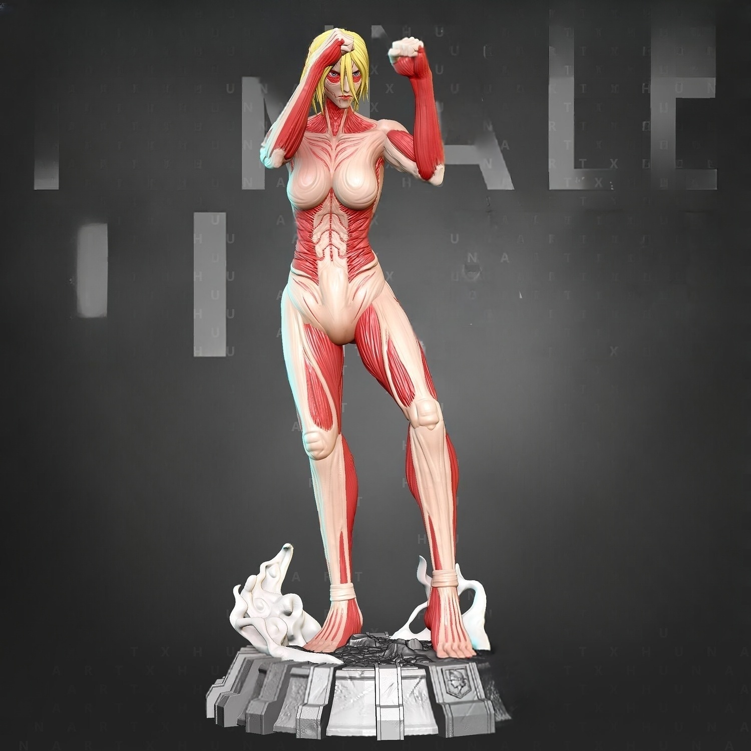 Η επιβλητική Female Titan από το “Attack on Titan” ζωντανεύει εντυπωσιακά μέσα από αυτή τη fan art φιγούρα, αποτυπώνοντας με λεπτομέρεια τους χαρακτηριστικούς μυϊκούς ιστούς και τη δυναμική στάση μάχης της Annie Leonhart σε μορφή Τιτάνα. Η εμβληματική στάση με υψωμένες γροθιές, έτοιμη για επίθεση, αποπνέει ισχύ, ευκινησία και ανελέητη αποφασιστικότητα.