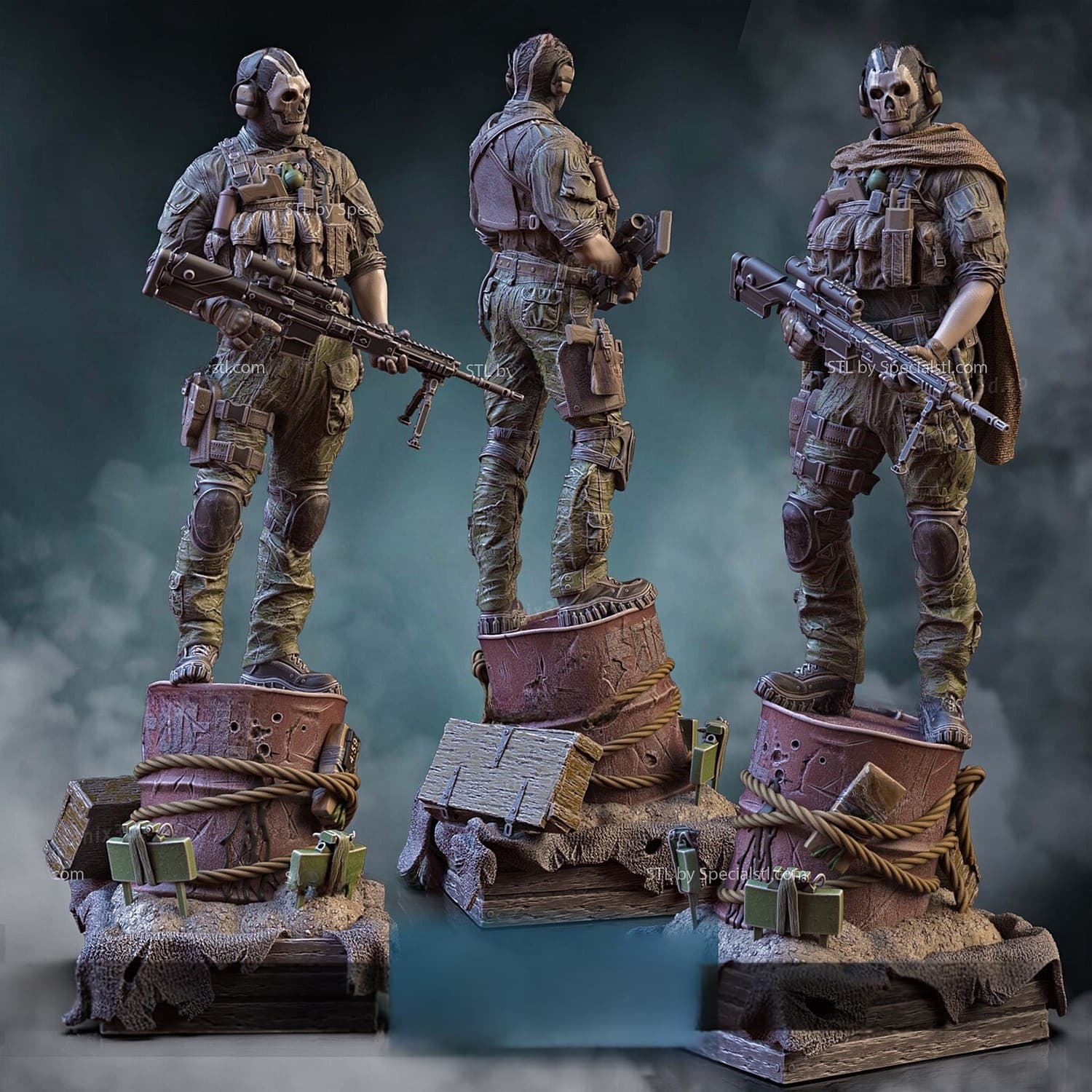 Το γλυπτό αποτυπώνει τέλεια το σκληρό του βλέμμα, τις υφές του στρατιωτικού εξοπλισμού και την αύρα ψυχρής αποφασιστικότητας που τον χαρακτηρίζει. Η βάση της φιγούρας είναι εμπνευσμένη από battlefield σκηνικό με ντεκόρ κάλυψης, λεπτομέρειες σχοινιών, νούμερα αποστολής και tactical κλαδιά.
