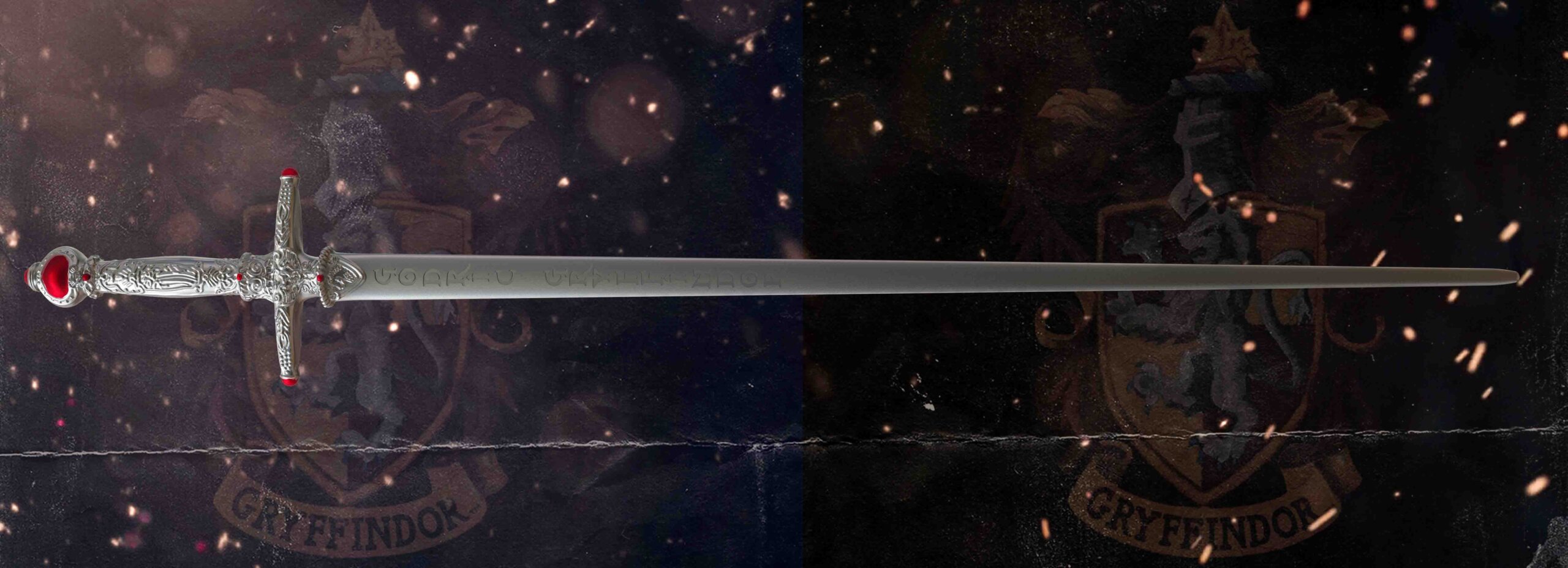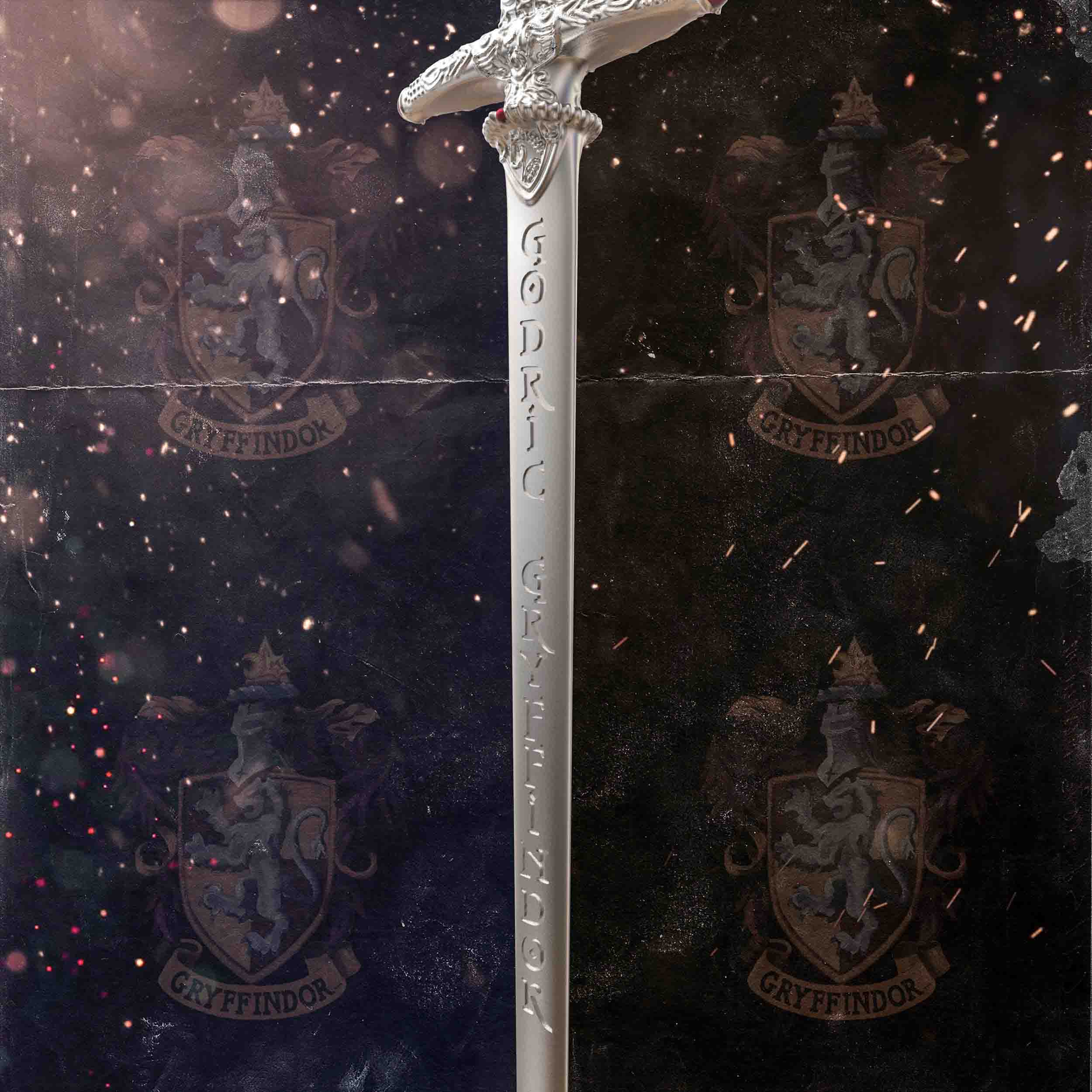 Το σπαθί του Gryffindor κατασκευάστηκε από goblin steel ενώ ποτέ δεν φθείρεται. Αντίθετα, απορροφά ό,τι το κάνει δυνατότερο. Για αυτό, απορρόφησε το δηλητήριο του Basilisk καθώς έγινε σύμβολο δύναμης και καθαρότητας. Κάθε λεπτομέρεια της λεπίδας θυμίζει την αποφασιστικότητα των Gryffindor.