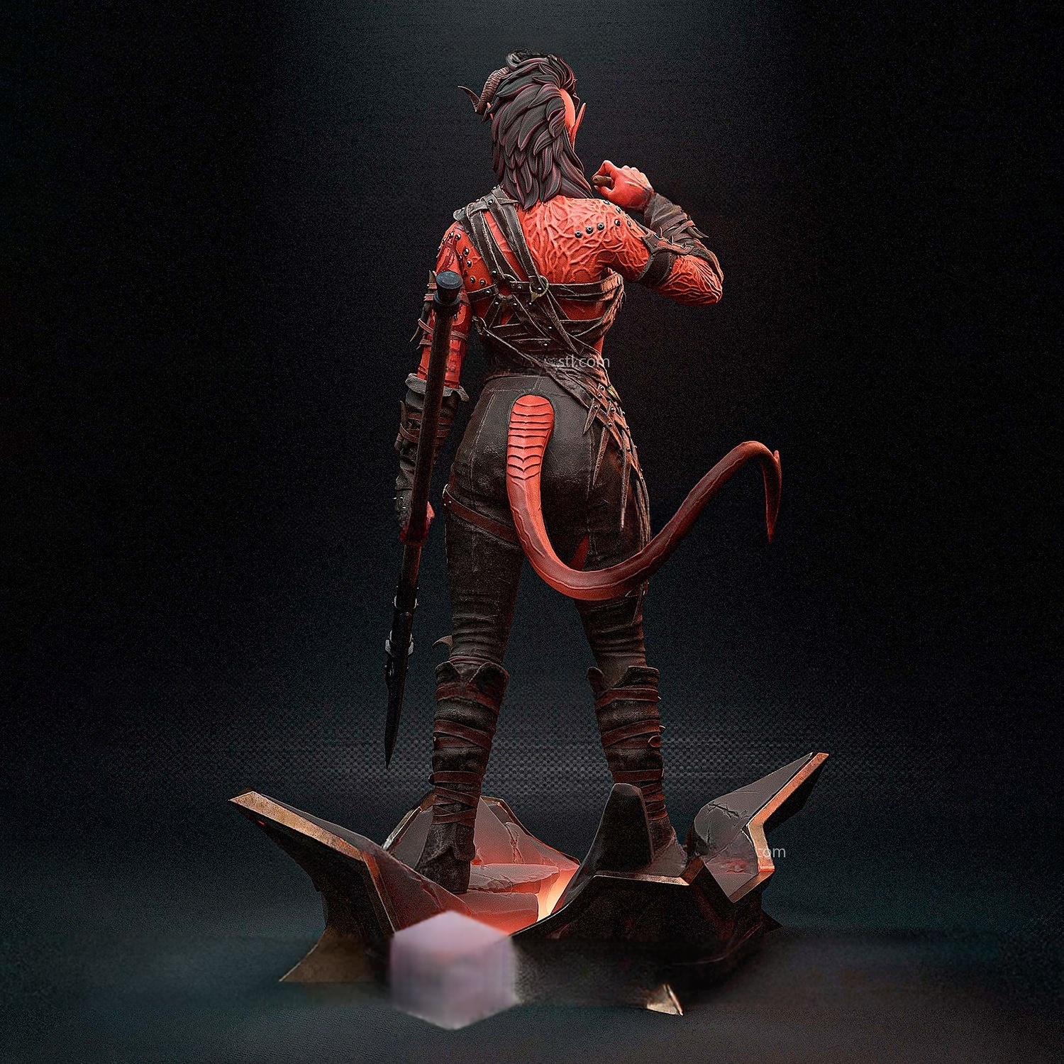 Η φλογερή πολεμίστρια Karlach επιστρέφει σε μια πιο ανεξάρτητη και “ανυπάκουη” εκδοχή της, βασισμένη στον κόσμο του Baldur’s Gate 3. Με τσιγάρο στο χέρι και επιβλητική στάση, αυτή η φιγούρα αποπνέει τη δύναμη και την προσωπικότητα που την κάνουν ξεχωριστή.