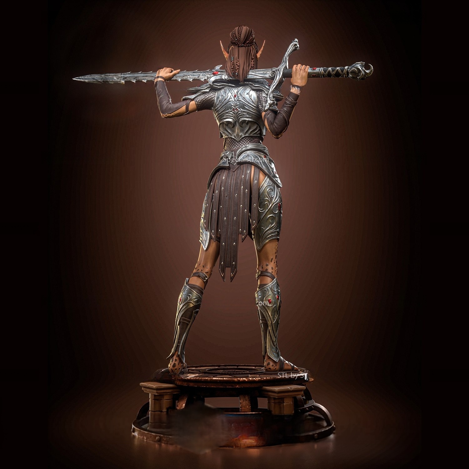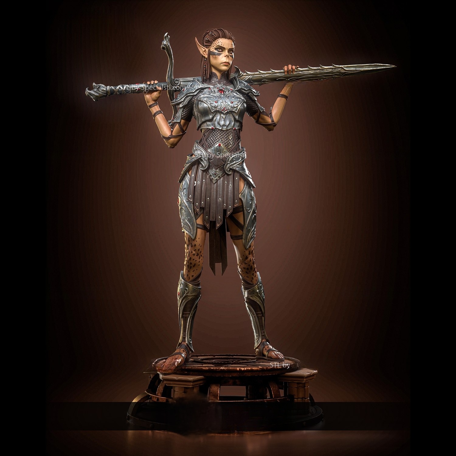 Η ατρόμητη πολεμίστρια των Githyanki, Lae’zel, παρουσιάζεται εδώ σε μια επιβλητική fan art φιγούρα που αποτυπώνει με ακρίβεια την ένταση, την αφοσίωση και τη βίαιη τιμή της φυλής της. Με το χαρακτηριστικό σπαθί gith, ακουμπισμένο στον ώμο και το βλέμμα γεμάτο αποφασιστικότητα, η Lae’zel στέκεται σαν ζωντανή απειλή πάνω σε μια μνημειακή βάση.