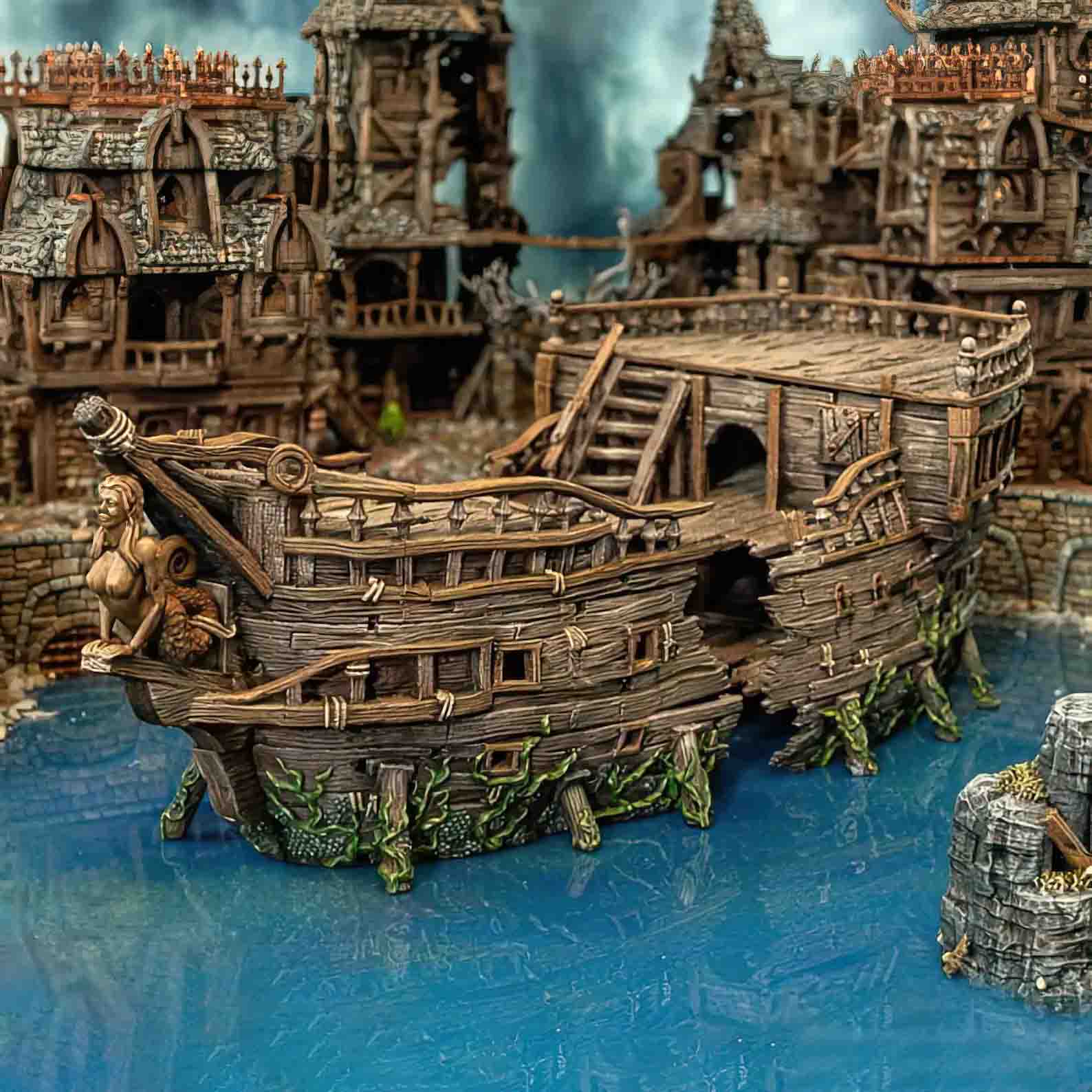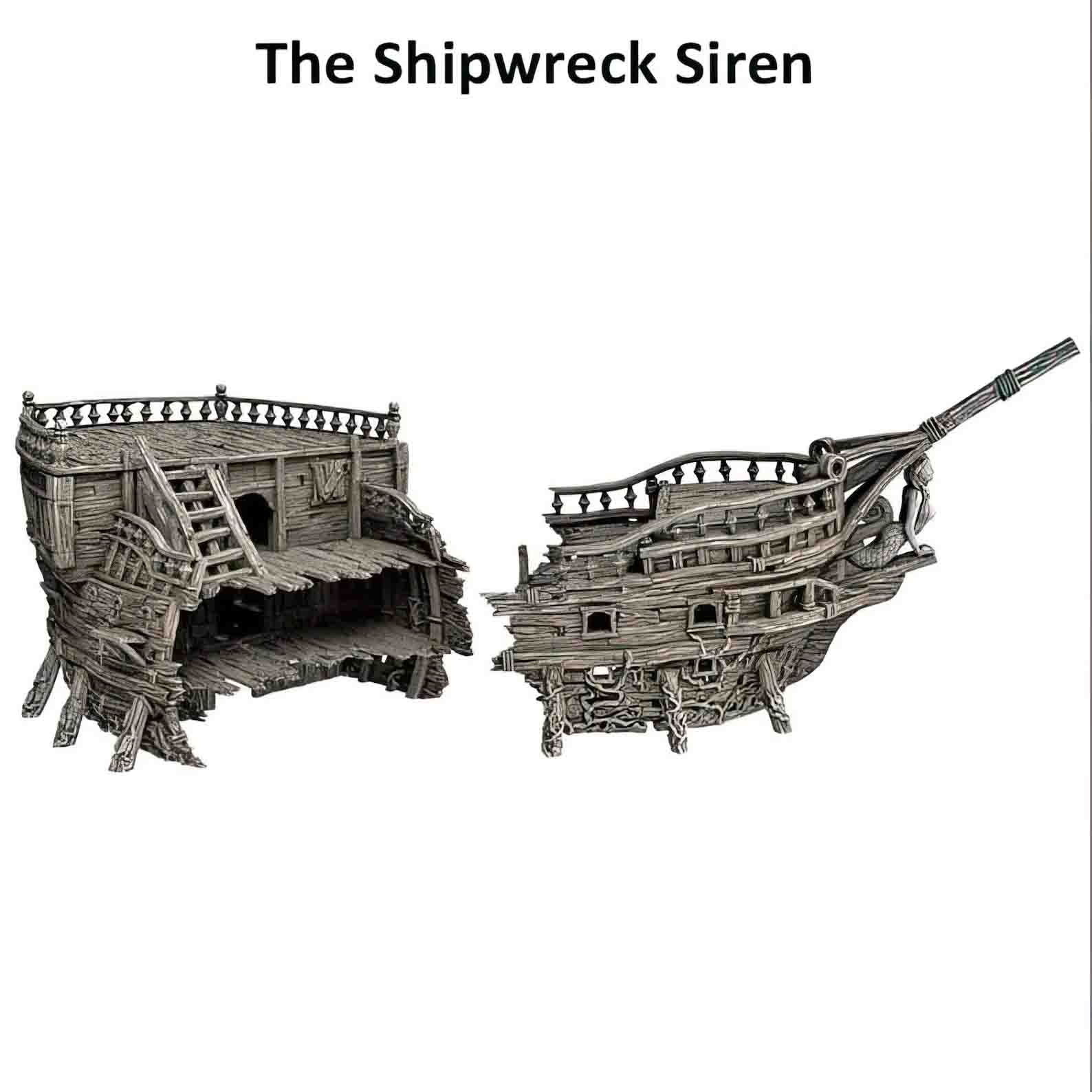 Το Shipwreck Siren είναι ένα εντυπωσιακό miniature terrain που αναπαριστά ένα παλιό πλοίο ναυαγισμένο στις ακτές ενός φανταστικού λιμανιού. Οι λεπτομέρειες του ξύλου, των σχοινιών αλλά και των θαλάσσιων φυκιών δημιουργούν μια ρεαλιστική σκηνή που ζωντανεύει κάθε tabletop περιπέτεια.