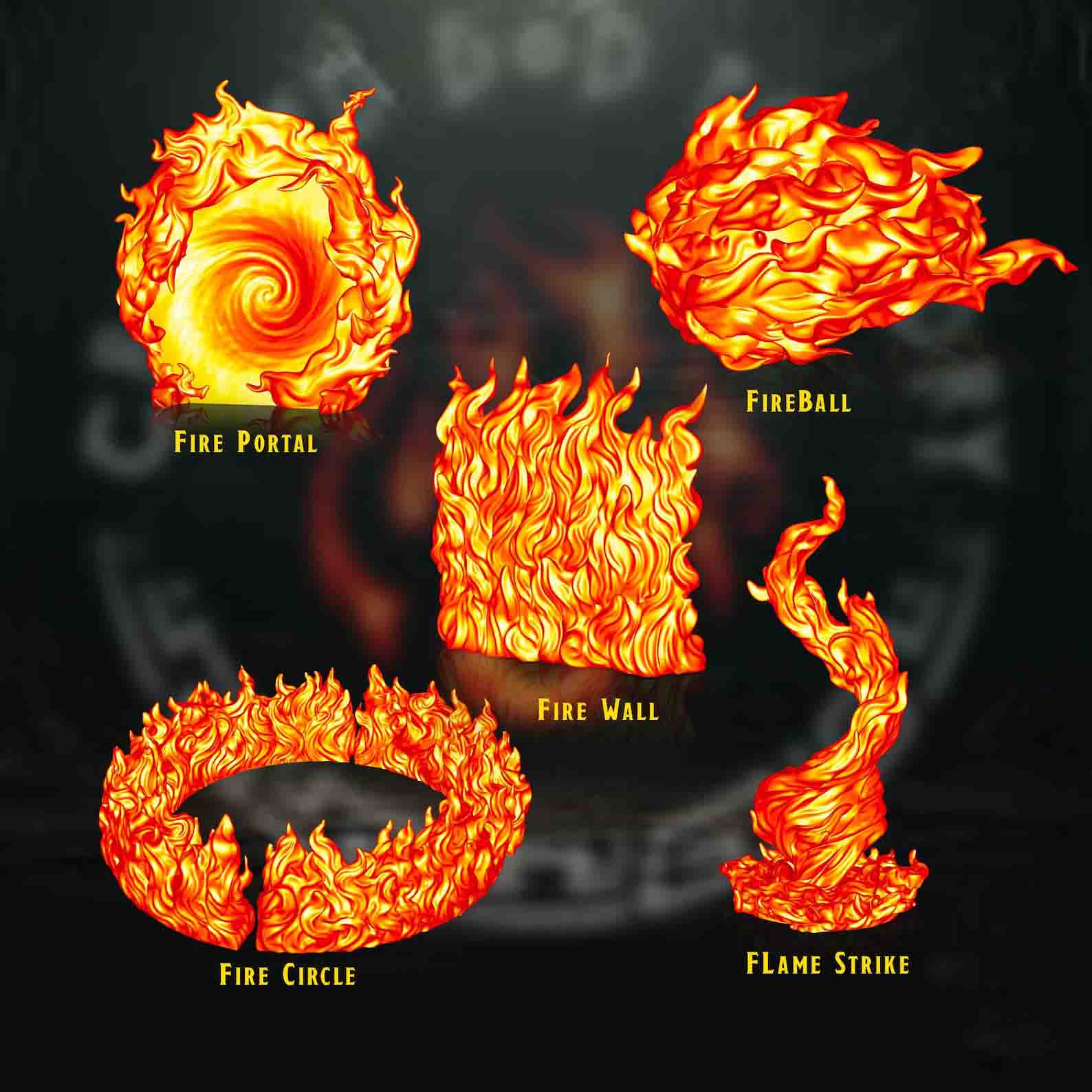 Το σετ περιλαμβάνει fire rings, ice walls, lightning strikes, poison clouds, magic bursts αλλά και elemental spirals. Κάθε κομμάτι αποδίδει την κίνηση καθώς και την ενέργεια του αντίστοιχου spell με εντυπωσιακή λεπτομέρεια.
