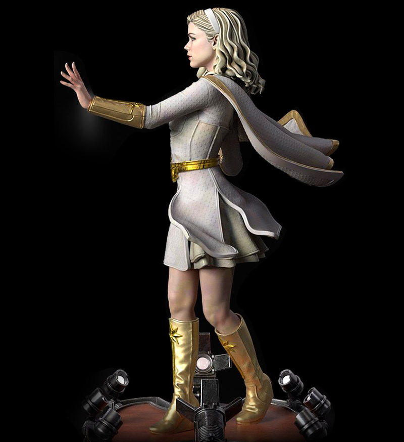 Αυτή το εντυπωσιακό 3D Starlight statue αποτυπώνει την Starlight στην πιο εμβληματική της στάση. Έτσι όπως εμφανίζεται στις live action στιγμές της σειράς The Boys. Η στολή της, σε λευκό αλλά και χρυσό, έχει αποδοθεί με απίστευτη λεπτομέρεια και υφή. Ενώ η βάση περιλαμβάνει κινηματογραφικούς προβολείς, δημιουργώντας την αίσθηση πως στέκεται στο επίκεντρο της προσοχής – όπως της αξίζει.