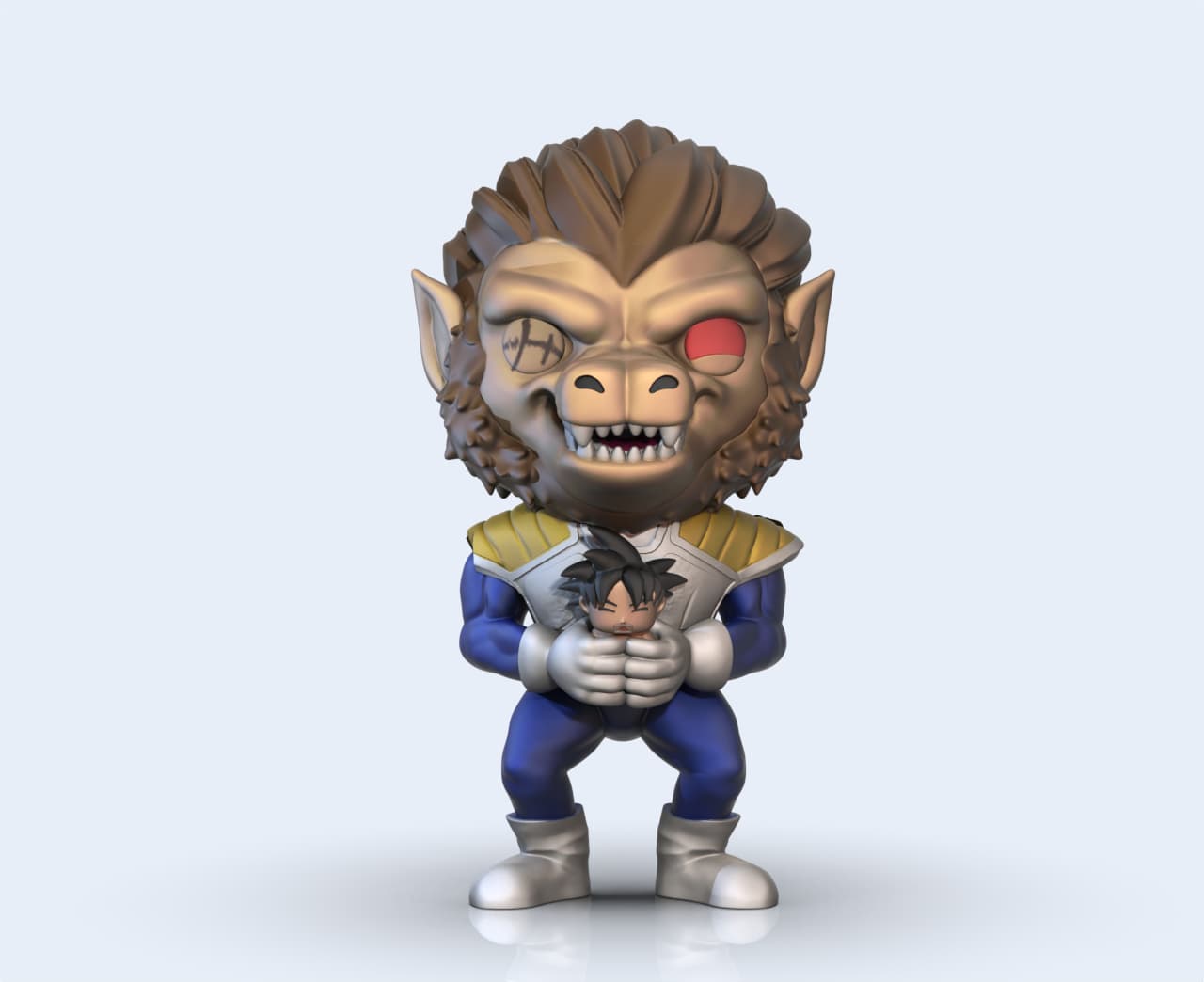 Το Vegeta Great Ape custom Pop αποτυπώνει μια από τις πιο εμβληματικές και τρομακτικές στιγμές της σειράς Dragon Ball Z. ‘Oταν ο Πρίγκιπας των Saiyan μεταμορφώνεται στον θηριώδη Oozaru κατά τη μάχη εναντίον του Goku. Το fan art αυτό supersized Pop ξεχωρίζει χάρη στην απειλητική παρουσία. Ενώ οι εκφραστικές λεπτομέρειες καθώς και η απεικόνιση της iconic σκηνής όπου ο Vegeta κρατά στα χέρια του τον Goku συναρπάζουν.