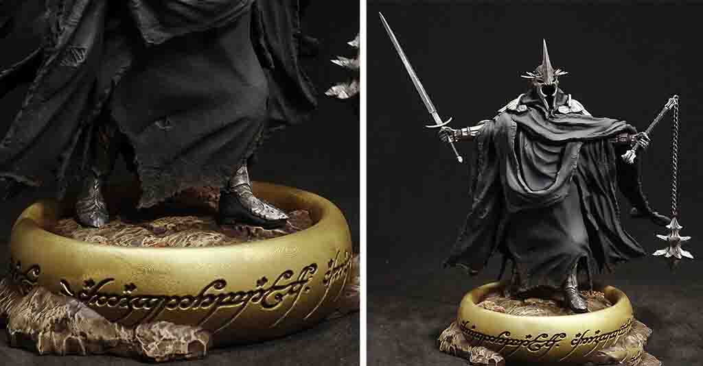 Κατασκευασμένη από υψηλής ανάλυσης ρητίνη. Η φιγούρα αποτυπώνει με ακρίβεια τις λεπτομέρειες του κράνους, της μαύρης κάπας και της πανοπλίας του. Το άγαλμα αποδίδει πιστά την ατμόσφαιρα σκοταδιού και φόβου που συνοδεύει τον Witch-king, ο οποίος θεωρείται ένας από τους πιο θρυλικούς αντιπάλους στη Μέση-Γη.