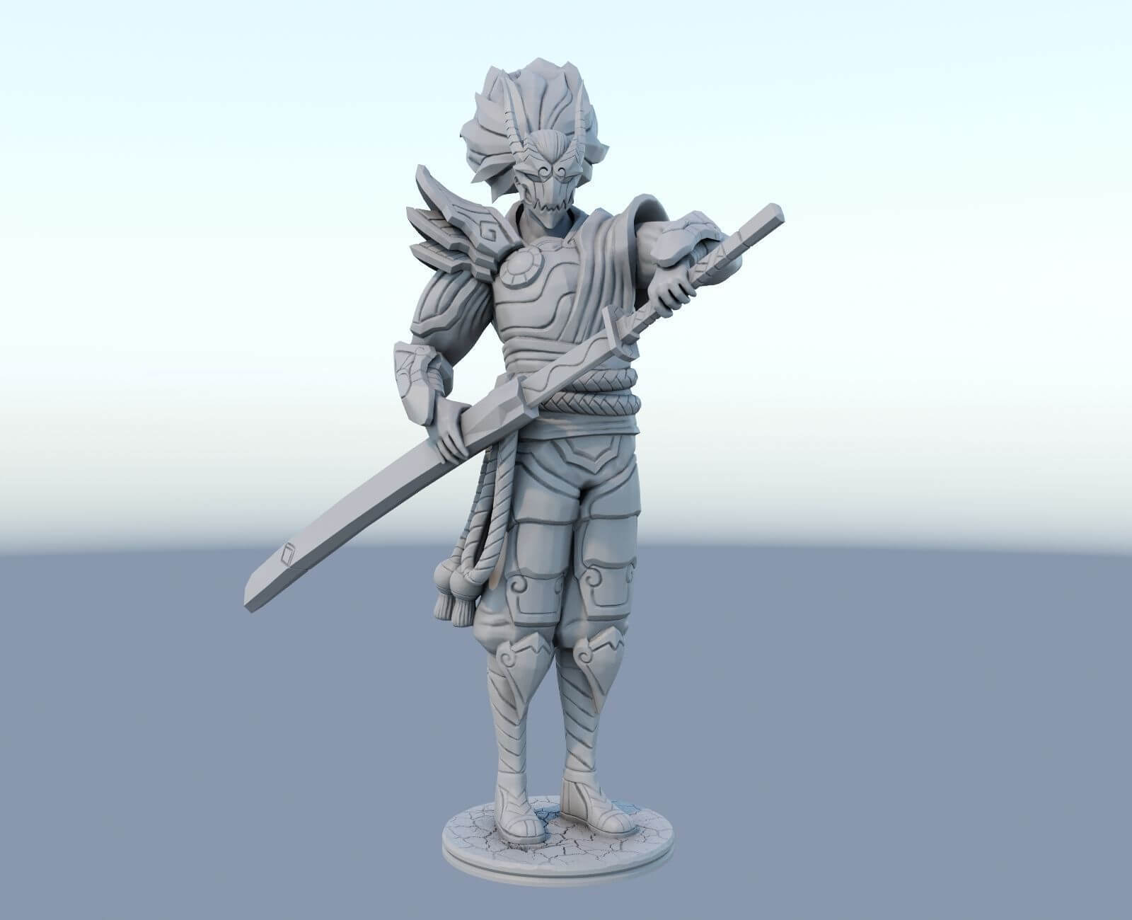🎨 Η βαφή γίνεται προσεκτικά στο χέρι και με αερογράφο. Χρησιμοποιούνται ανθεκτικά ακρυλικά χρώματα που αναδεικνύουν τις λεπτομέρειες της πανοπλίας, της μάσκας και του σπαθιού.